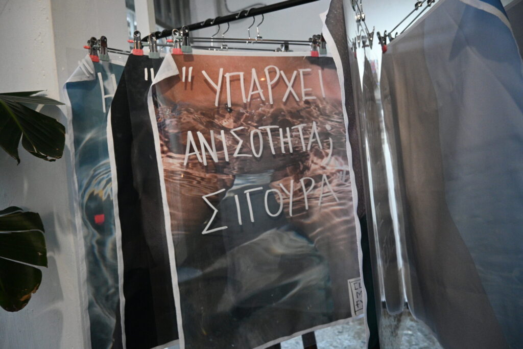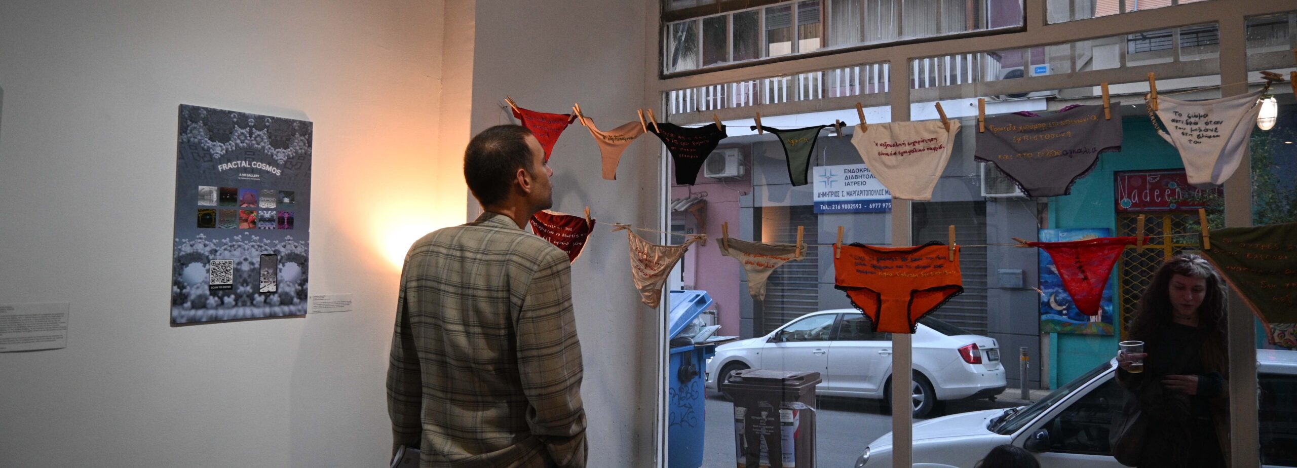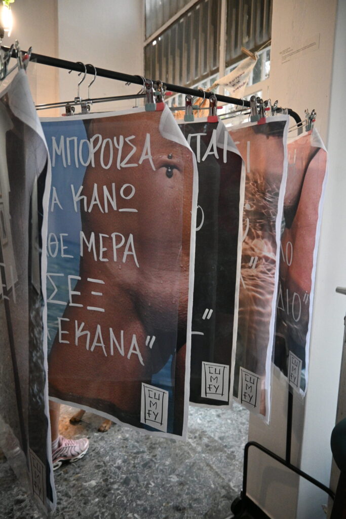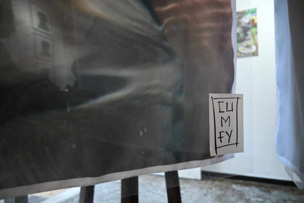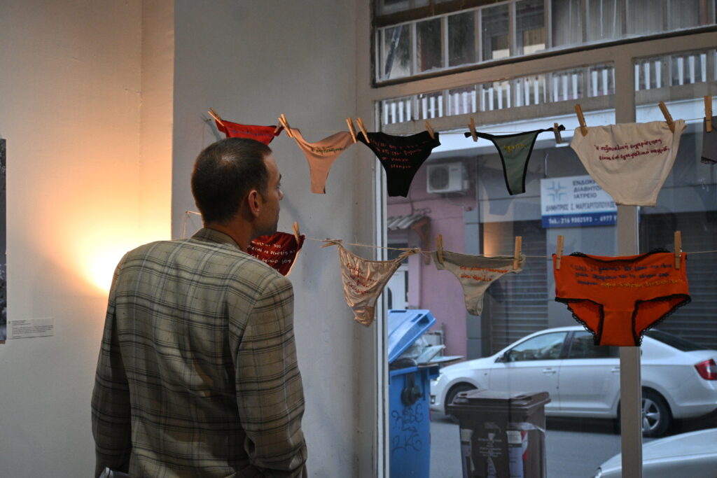 The central visual element consisted of photographs of bodies printed directly onto fabric. Transparent PVC surfaces bearing the handwritten quotes were positioned over these prints , creating a striking multi-layered optical effect where the collective voices appeared to float above the bodies. Additionally, a simple clothesline was used to display the embroidered underwear, referencing an everyday, intimate practice and connecting the personal narratives to a common, recognizable context. The materials—fabric, PVC, and embroidery—were chosen to enhance the sense of intimacy, exposure, and empathy, successfully inviting visitors to move through the space and experience the dialogue between the body and the word.